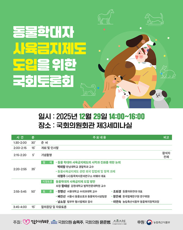 동물학대자 사육금지제도 도입 위한 국회토론회 29일 열린다